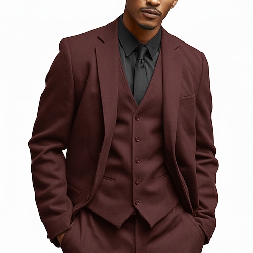 Uomo Matrimonio Affari Completi in Tweed Bavero classico Nero Borgogna Quotidiano Formale Tinta unita Vestibilità su misura 3 pezzi Monopetto Due Bottoni