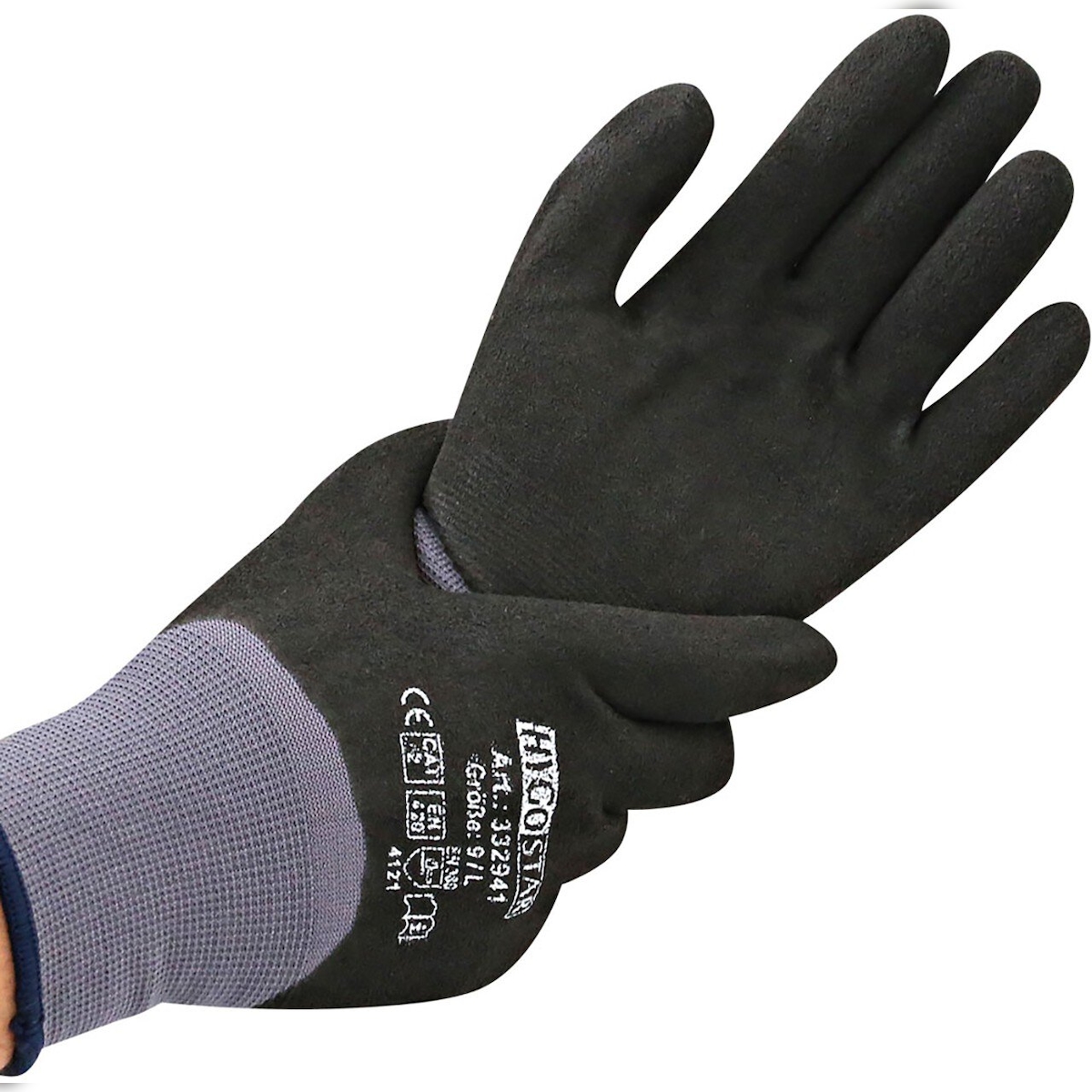 FRANZ MENSCH Hygostar Stretch-Strick-Handschuh ERGO FLEX 4/4 Nitril-PU-Beschichtung, schwarz, Größe L , 4/4 getaucht