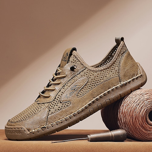 Per uomo Sneakers Scarpette antiscivolo Canyoning Casual Quotidiano Pelle PU Rete Traspirante Confortevole Antiscivolo Allacciatura Nero Marrone Verde Estate Primavera