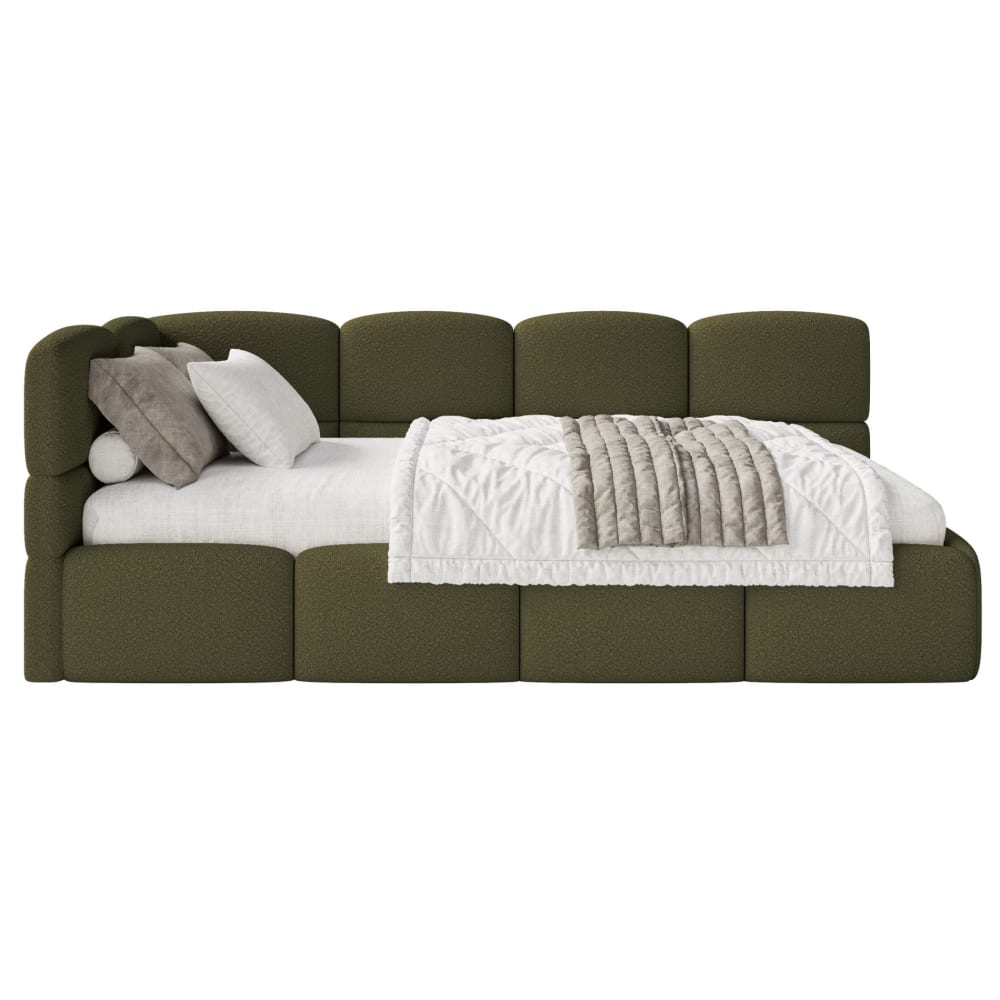 Lit ado 90x200, gauche, avec matelas, en bouclette olive