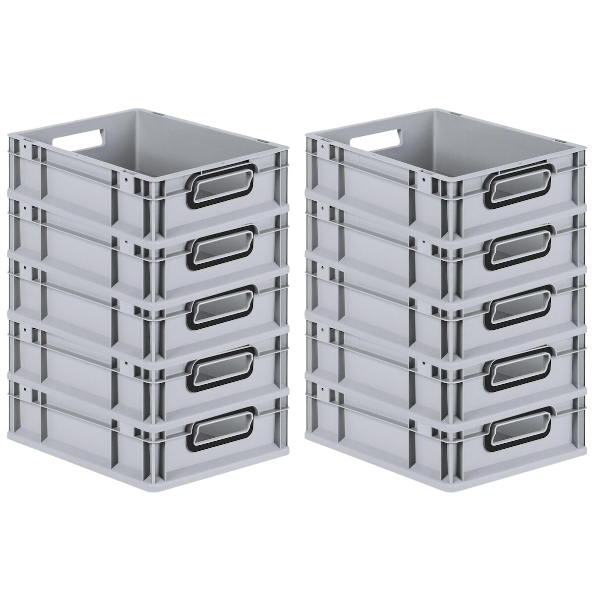 PROREGAL SparSet 10x Eurobox NextGen Color, HxBxT 12x30x40cm, 11 Liter, Griffe schwarz offen, Grau, Eurobehälter, Transportbehälter