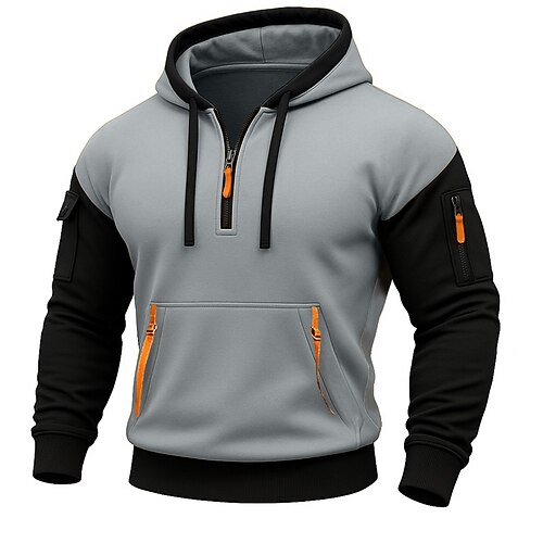 Per uomo Felpa con cappuccio Felpa con cappuccio in pile Felpa con cappuccio tattica Nero Blu marino Cachi Grigio chiaro Grigio scuro Con Cappuccio Semplice Tasca Zip a un quarto Sport Outdoor