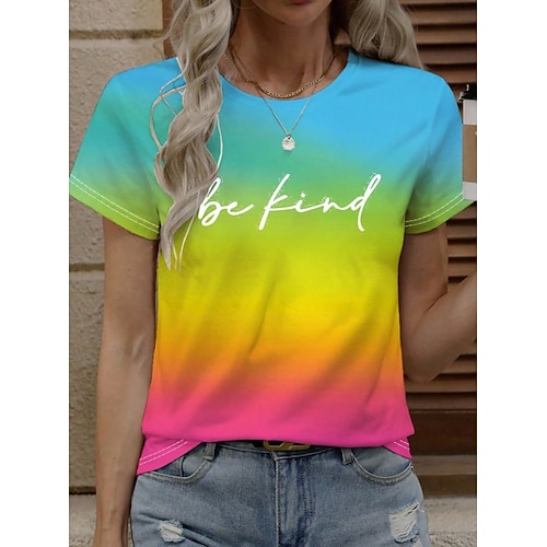 Per donna Maglietta Top estivi Grafico Gradiente di Colore Classico Casual Manica Corta Girocollo Top corti Quotidiano Weekend Stampato Blu Giallo Viola Estate