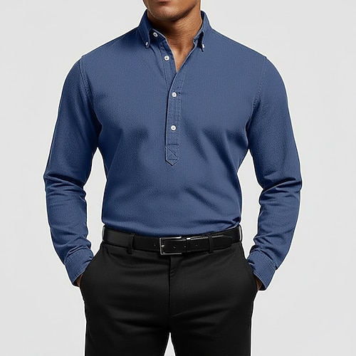 Per uomo Camicia Oxford Semplice Casuale All'aperto Blu chiaro Nero Bianco Blu marino Manica Lunga Colletto italiano visibile Estate Primavera Abbigliamento Tasca