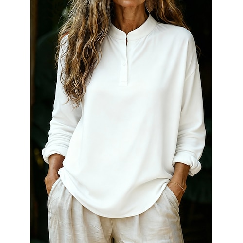 Per donna Camicia Tinta unica Quotidiano Elegante Casual Manica Lunga Collo Alto Top Regolari Quotidiano Bottoni Bianco Rosa Rosso Verde Estate Primavera Autunno