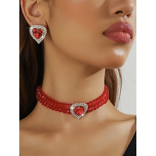 collana girocollo in cristallo champagne da donna set di orecchini a bottone, gioielli con strass a forma di cuore, elegante stile romantico per la serata di San Valentino