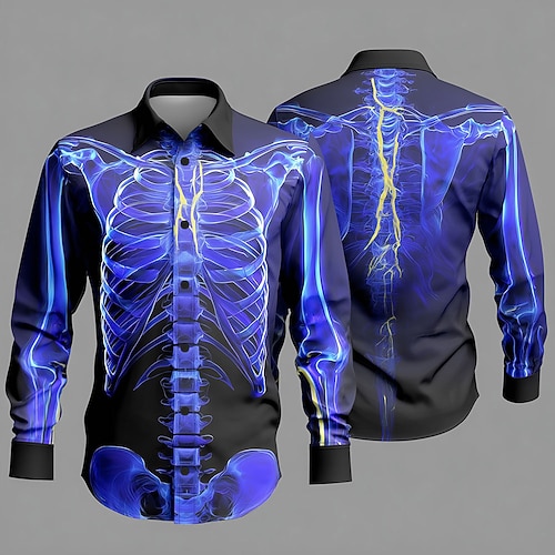 Costumi da Uomini Scheletro Camicia Camicia Button Up Maniche Lunghe Stile Punk Goth Scuro All'aperto Vacanze Estate Primavera Colletto Stampa 3D Camicie nere viola viola