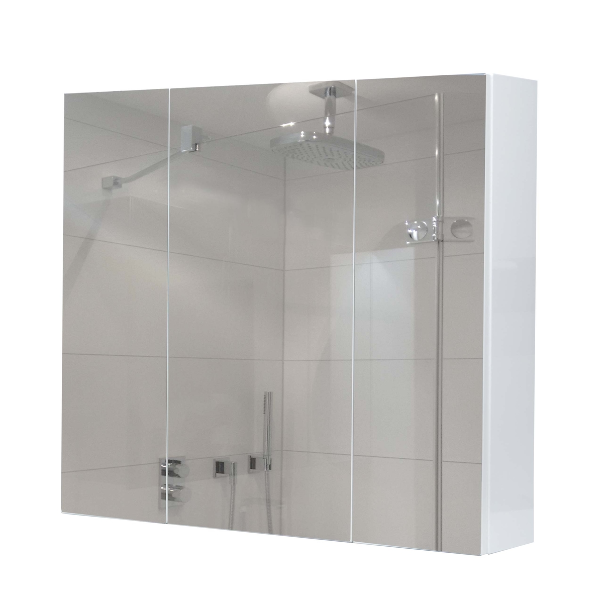 Mendler Spiegelschrank HWC-B19b, Badschrank Hängeschrank, 6 Regalböden hochglanz FSC®-zertifiziert 70x80x16cm ~ weiß