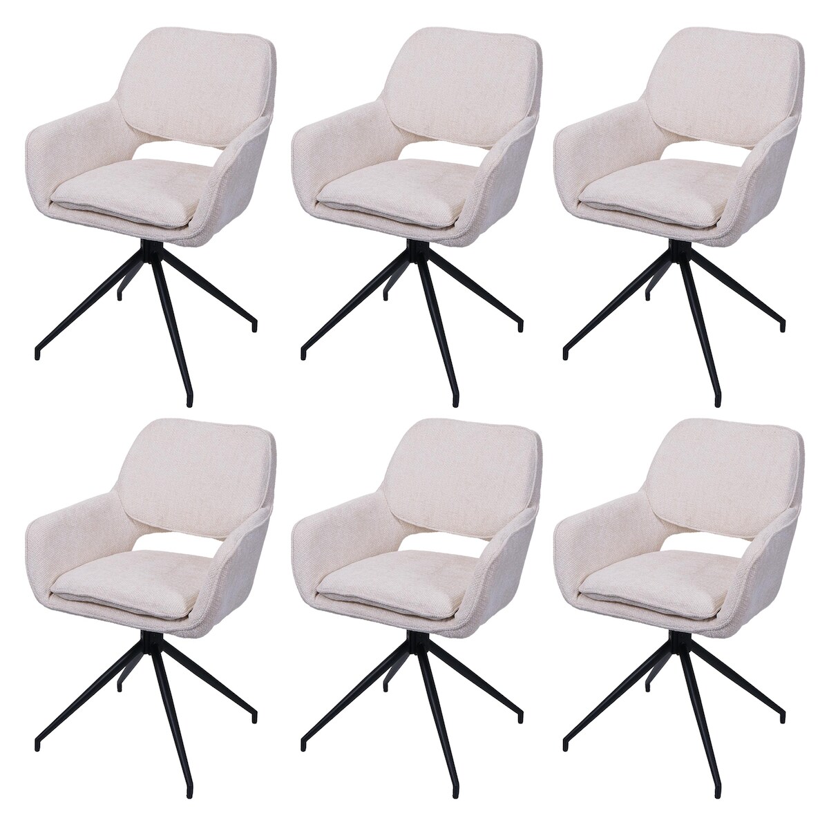 Mendler 6er-Set Esszimmerstuhl HWC-N74, Küchenstuhl, drehbar Auto-Return, Stoff Chenille (490g/m²) Öko-Tex ~ creme