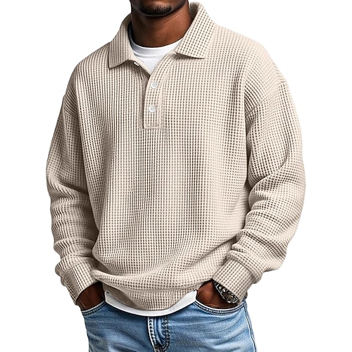 Per uomo Magliette Polo a Nido d'Ape Polo Casuale Streetwear Bavero Manica Lunga Essenziale Moderno Semplice Bottoni Primavera Autunno Vestibilità regolare Marrone scuro Nero Bianco Verde chiaro