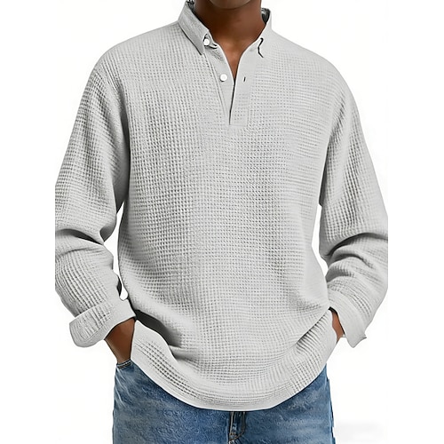 Per uomo Polo a nido d'ape Magliette polo Formale Attività commerciale Bavero Classico Manica lunga Di tendenza Essenziale Tinta unica Collage Bottoni Primavera Autunno Standard Grigio scuro Nero