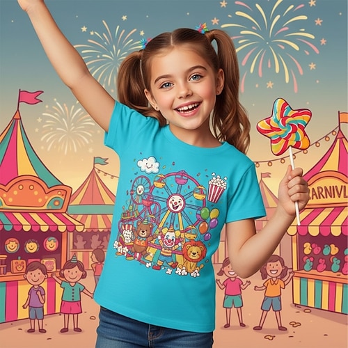 Costume di Carnevale 2026 Ragazze 3D Animale Pagliaccio Maglietta Manica Corta Stampa 3D Estate Primavera Sport Moda Streetwear Bambini 4-12 Anni Girocollo Casuale Quotidiano All'aperto Vestibilit