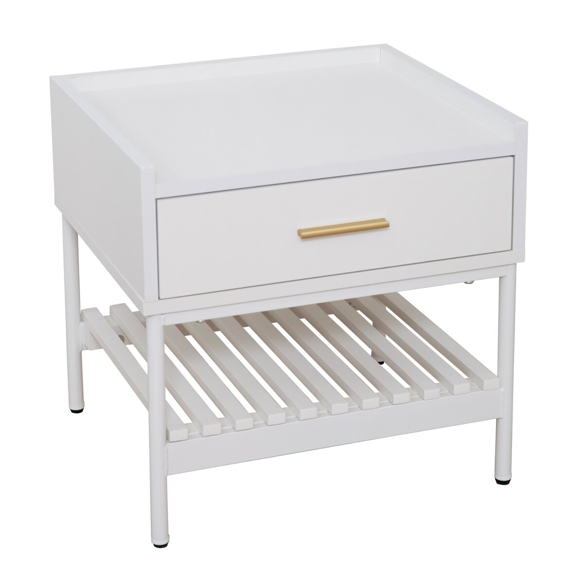 SVITA KORE Nachttisch mit Schublade Nachtschrank Nachtkommode Weiß