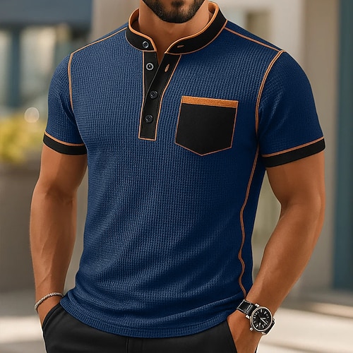Per uomo Maglia Henley Maglietta Manica Corta Tinta unica Semplice Tinta unita Casual Tasca 2 Pezzi Bottoni Henley All'aperto Casuale Quotidiano Estate Primavera Autunno Tutte le stagioni 1 2 3