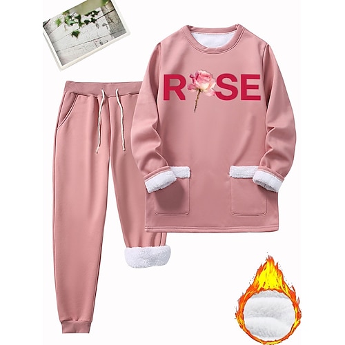 Per donna Caldo Quotidiano Set da due pezzi Tuta Set di Pantaloni Manica Lunga Girocollo Lettera Coulisse Stampato Casuale Quotidiano Nero Rosa scuro Blu Autunno Vestibilità regolare