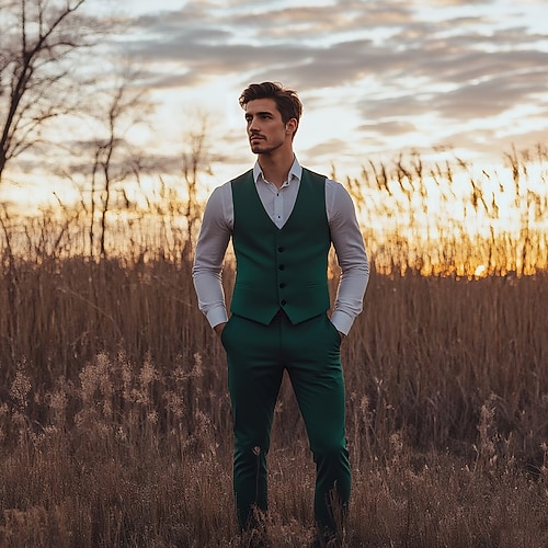 Uomo Casuale Matrimonio Abiti da festa Bavero classico Nero Borgogna Formale Tinta unita Vestibilità aderente 2 pezzi