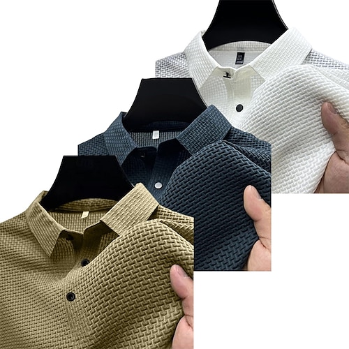 Polo da uomo 3 pezzi, maglietta da golf casual, classica, a maniche corte, alla moda, basic, tinta unita, confezione multipla da 3 pezzi, estiva, per tutte le stagioni, vestibilità regolare