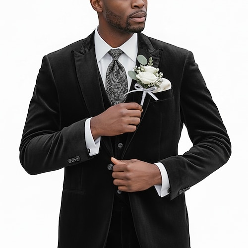 Uomo matrimonio invernale Feste Abito di velluto Bavero a lancia Nero Borgogna Festa Formale Tinta unita Vestibilità su misura 3 pezzi Monopetto Due Bottoni