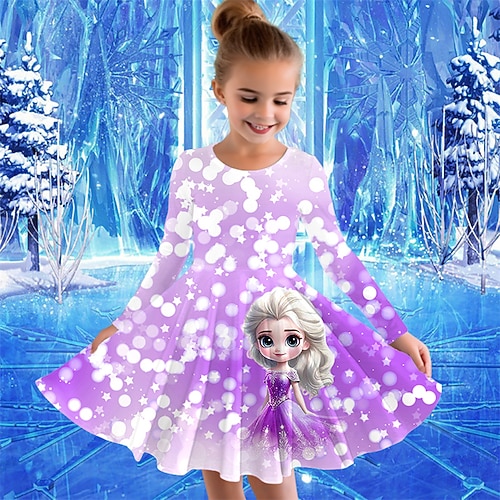 ragazze' 3D Cartoni animati Abito Manica Lunga Estate Primavera Vacanza Quotidiano Ferie Principessa Bello Dolce Bambini 4-12 Anni Vestito Casual Abito a trapezio Lunghezza al ginocchio Vestibilit