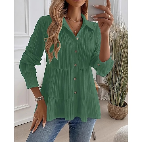 Per donna Camicia Blusa Semplice Casual Manica Lunga Colletto a Camicia Top Regolari Quotidiano Ferie Arricciato Bottoni Nero Rosso Blu marino Verde Beige Estate