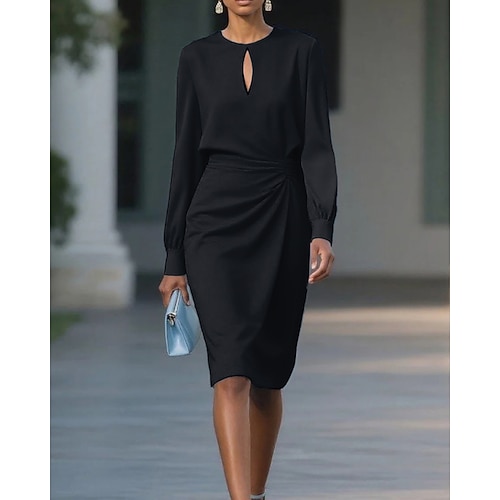 Per donna Abito Midi Abito con Paillettes Vestito da Festa Abito da Cocktail Abito a Portafoglio Moda Moderno Festa serale Feste Occasione speciale Vestibilità regolare Semplice Manica Lunga Girocollo