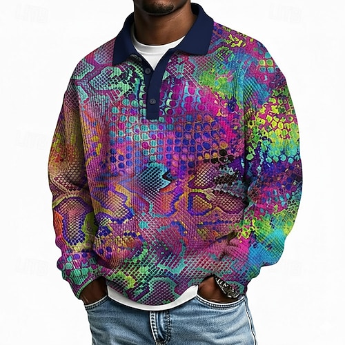 Per uomo Leopardato Magliette Polo a Nido d'Ape Manica Lunga Magliette polo Bavero Casual Streetwear Athleisure Abbigliamento quotidiano Stampa 3D Primavera Autunno Inverno Arcobaleno Multi Color