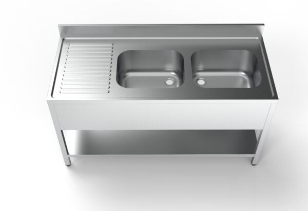 Edelstahl Spültisch PRO mit Grundboden 160 x 70 cm - 2 Becken rechts