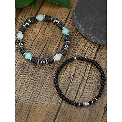 Set di braccialetti con perline in pietra naturale da uomo, gioielli da polso elasticizzati a strati in stile bohémien per abbigliamento casual, feste e regali