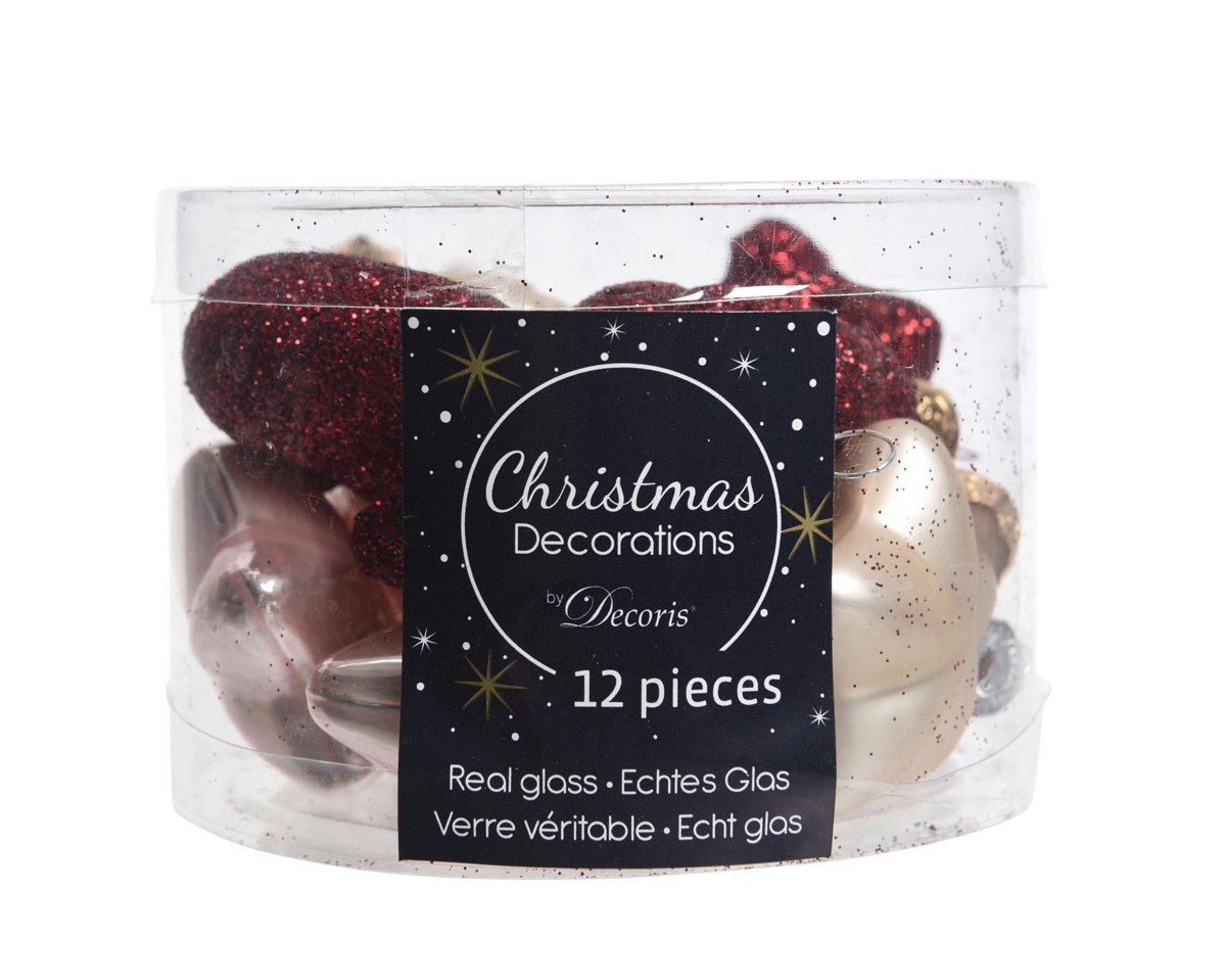 12 Christbaumschmuck Figuren Mix 4cm Glas Zapfen Herzen Sterne Blumen Anhänger