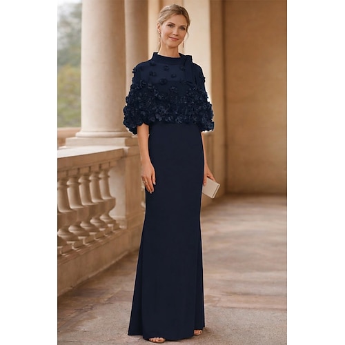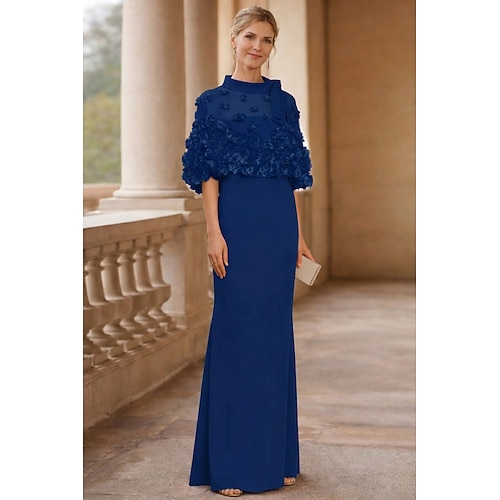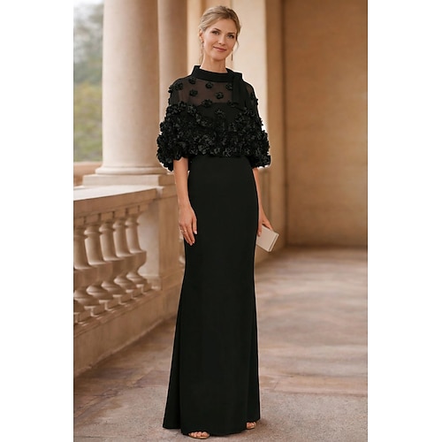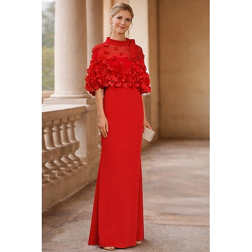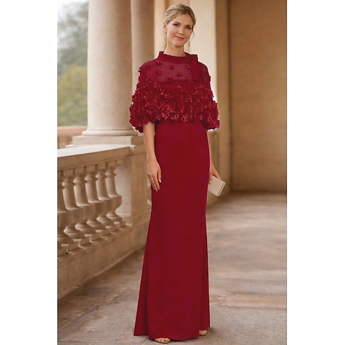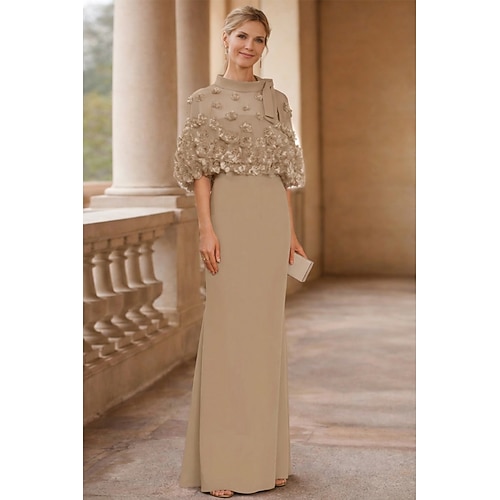 Tubino Colonna Lunghezza al pavimento Abiti da Ballo Abito da Sera Da principessa Abito formale Elegante Mezza Manica Collo gioiello Ospite di nozze Serata Formale Ricevimento di nozze autunnale con