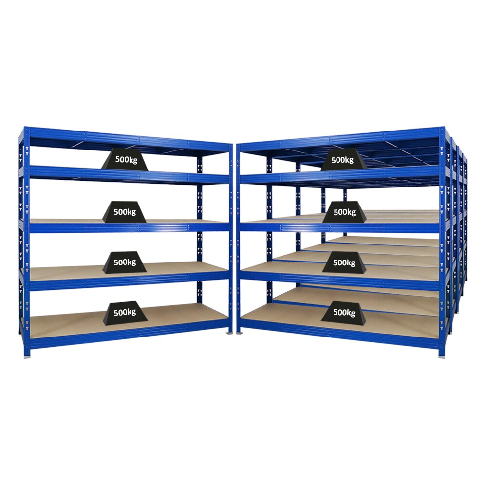 PROREGAL Mega Deal 5x Profi Schwerlastregal Rhino | HxBxT 180x200x60cm | 5 Spanplatten-Ebenen 8mm | Fachlast 500kg | Blau