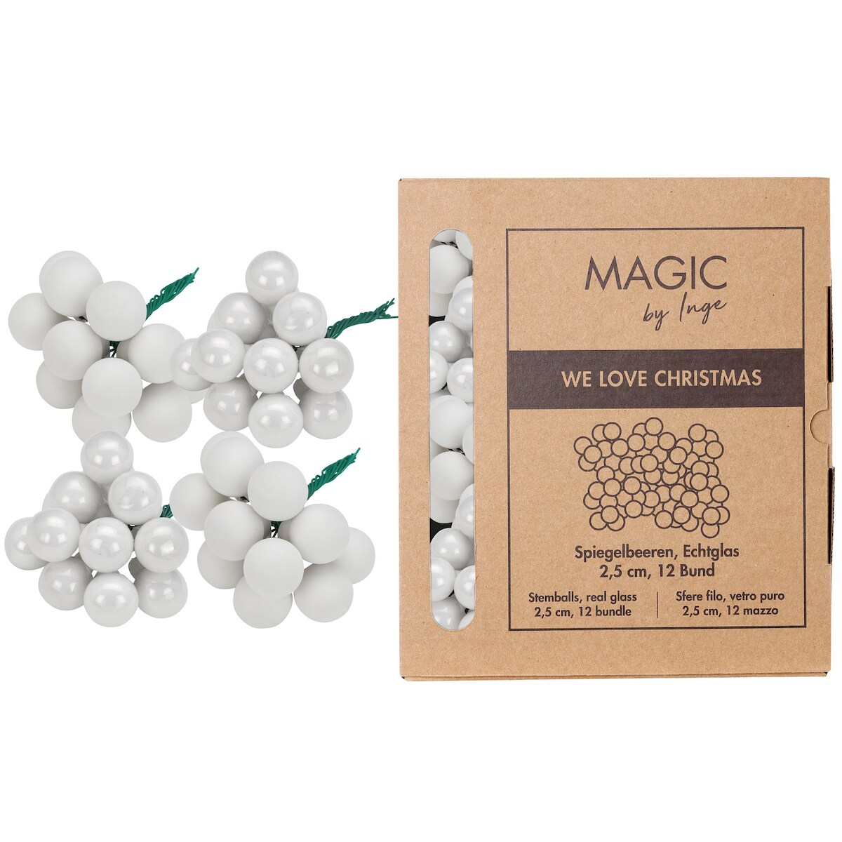 144 Weihnachtskugeln am Draht Glas 2,5cm Spiegelbeeren matt & glänzend kleine Dekokugeln Weihnachten Mini Christbaumschmuck Weihnachtsdeko Weiß