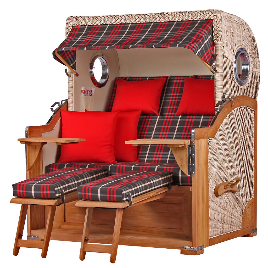Mr. Deko Strandkorb Komplettset - bene living - Königssee Teak Bullauge - PE shell - Modell 529 - inkl. Liftersystem