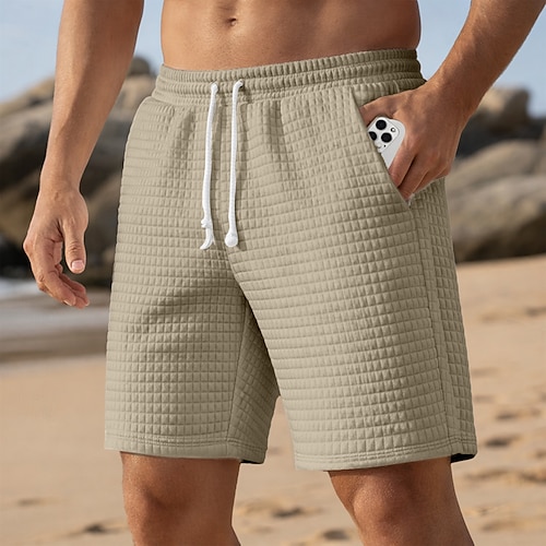 Per uomo Nido d'ape Shorts Pantaloncini Estivi Shorts da Spiaggia Pantaloncini casual Coulisse Elastico in vita Tinta unica Comodità Lunghezza al ginocchio Quotidiano All'aperto Ferie Vacanza Moda