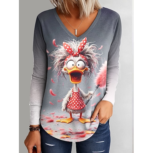 Per donna Maglietta Ombre Grafico Anatra Vintage Elegante Classico Manica Lunga Scollo a V Top Regolari Quotidiano Stampato Blu Viola Verde Grigio Primavera Autunno Inverno