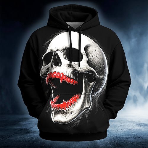 Per uomo Teschio 3D Felpa con Cappuccio Felpa Punk Esagerato Gotico Casual Manica Lunga Girocollo Con Cappuccio Club Abbigliamento casual alla moda Nero Rosso Blu Verde Coulisse Autunno Inverno