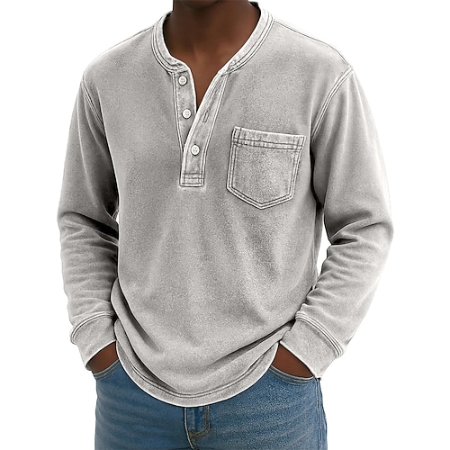 Per uomo Maglia Henley Camicia 100% cotone lavaggio acido Maglietta Manica Lunga Vintage Retrò Vintage Casual Stile Vintage Lavato Henley Casuale Primavera Autunno Tutte le stagioni Marrone scuro