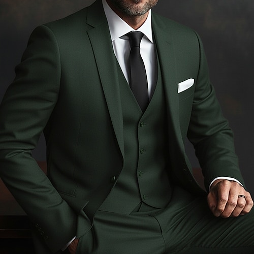 Uomo Matrimonio Casuale Abiti da lavoro Bavero classico Nero Verde scuro Quotidiano Affari Tinta unita Vestibilità su misura 3 pezzi Monopetto a un bottone