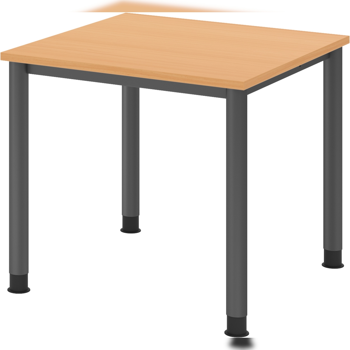 bümö höhenverstellbarer Schreibtisch H-Serie 80x80 cm in Buche, Gestell in Graphit - PC Tisch für's Büro manuell höhenverstellbar, Computertisch