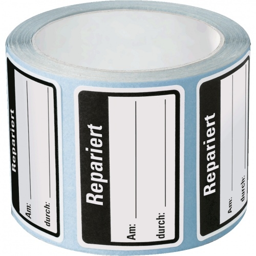 Aufkleber I Qualitätsaufkleber Repariert, Haftpapier, ablösbar, 40x25mm, 250/Rolle