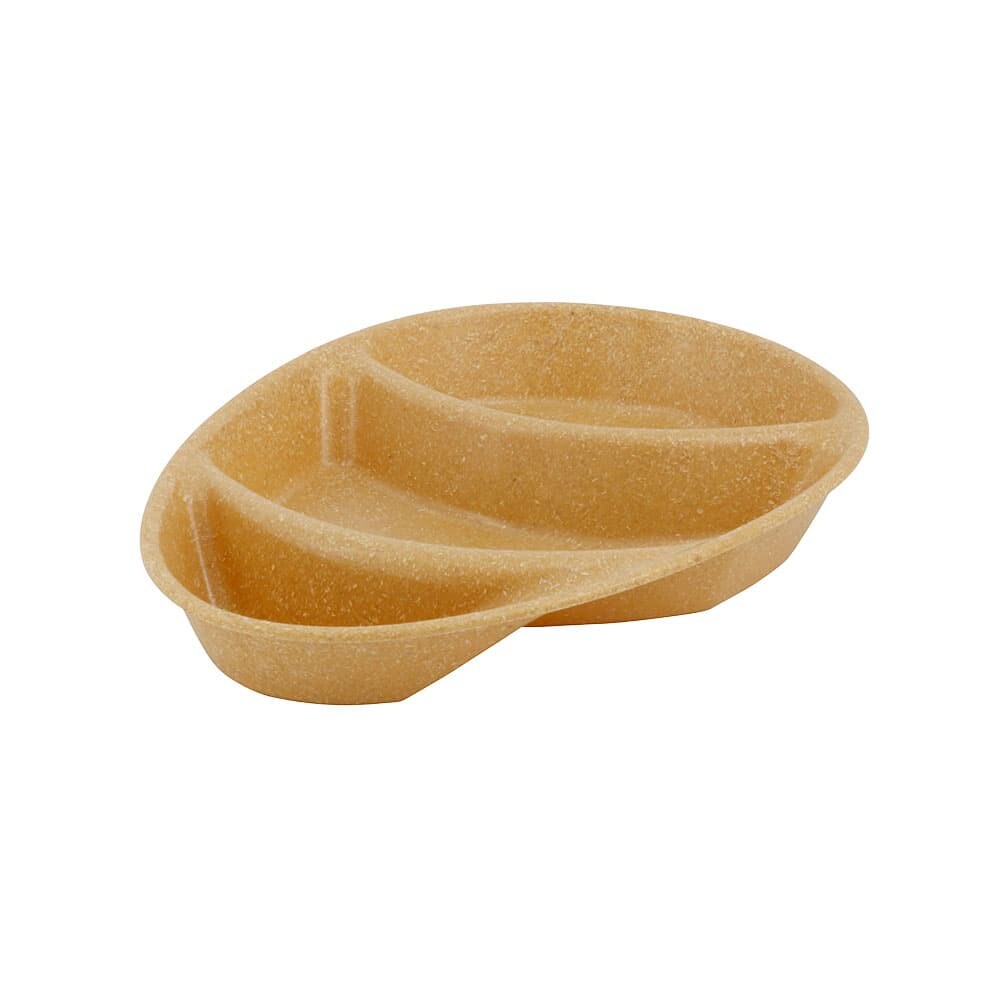 greenbox - Mehrweg-Menü-Teller "Häppy Plate" 27,5 x 20 x 3,5 cm, 3 Kammern, tropfenförmig, Cashew / creme-weiß, 60 St.