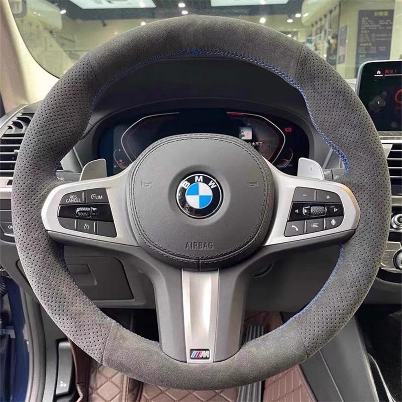 Håndsydd blå linje semsket skinn anti-skli Bilrattdeksel For BMW M Sport G32 G20 G21 G16 X3 G01 X4 G02 Bildeler
