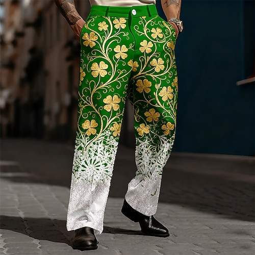 Festa di San Patrizio Per uomo Quadrifoglio Trifoglio Colore sfumato Pantaloni Pantaloni Eleganti Pantaloni da Abito Misura del girovita medio Moda Casual All'aperto Abbigliamento Quotidiano