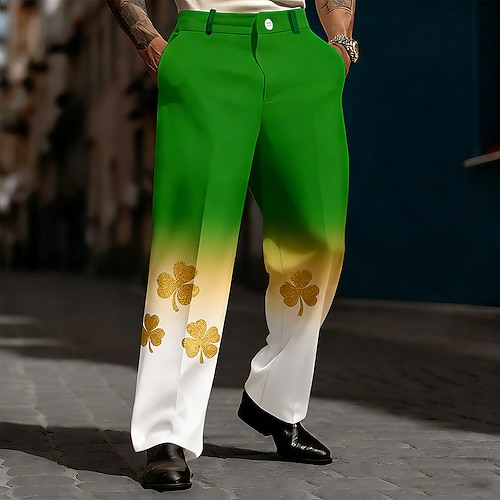 Festa di San Patrizio Per uomo Trifoglio Colore sfumato Pantaloni Pantaloni Eleganti Pantaloni da Abito Misura del girovita medio Moda Casual Ferie Pantaloni eleganti con vestibilità comoda e tasche