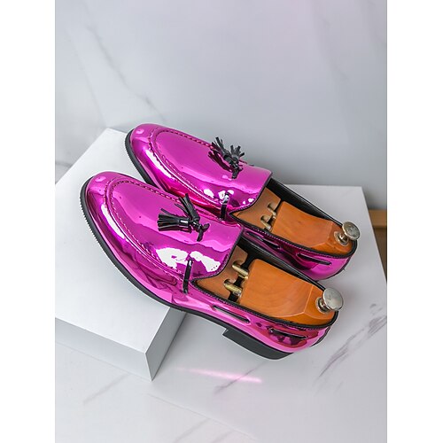 mocassini da uomo in vernice viola con dettaglio nappa - eleganti calzature formali per abiti da sera, occasioni speciali e matrimoni