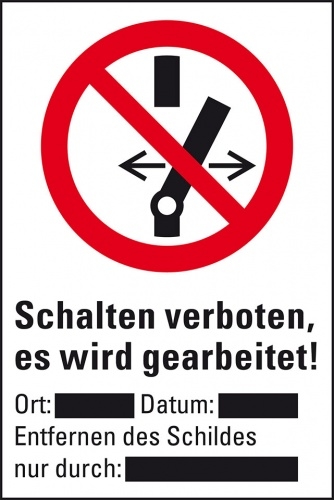 Schild I Verbots-Kombischild Schalten verboten, Magnetfolie, 150x200mm, ASR A1.3, DIN EN ISO 7010 P031