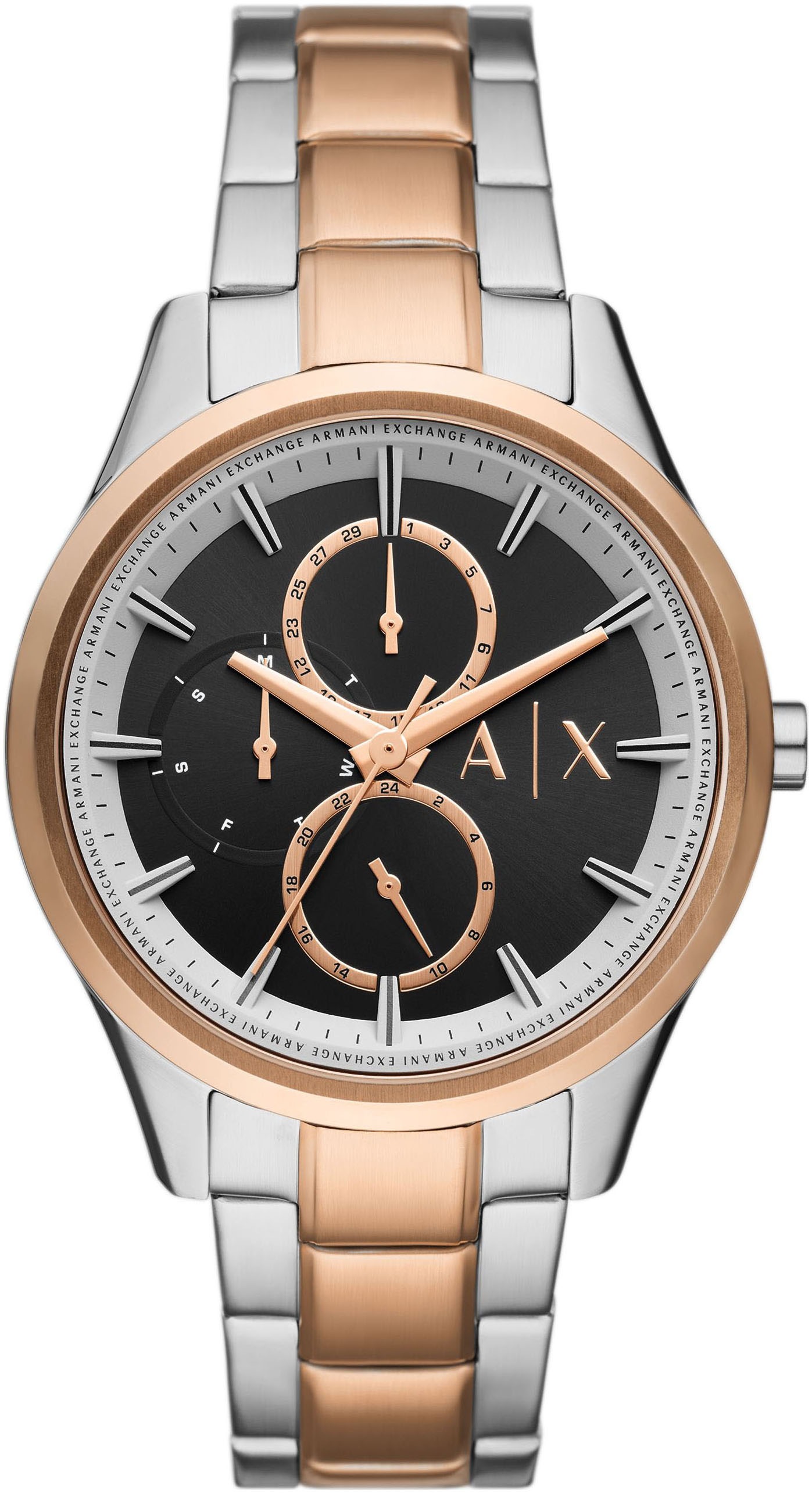 Multifunktionsuhr ARMANI EXCHANGE, silber (silberfarben, roségoldfarben), Armbanduhren, Herren, Quarzuhr, Armbanduhr, Herrenuhr, analog, Edelstahlarmband