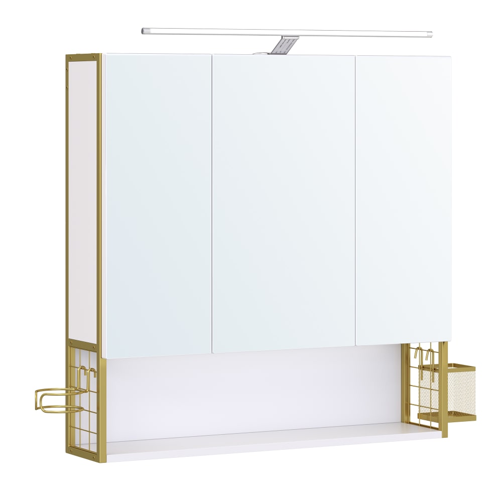 Armoire murale avec lumière LED 3 portes effet bois blanc