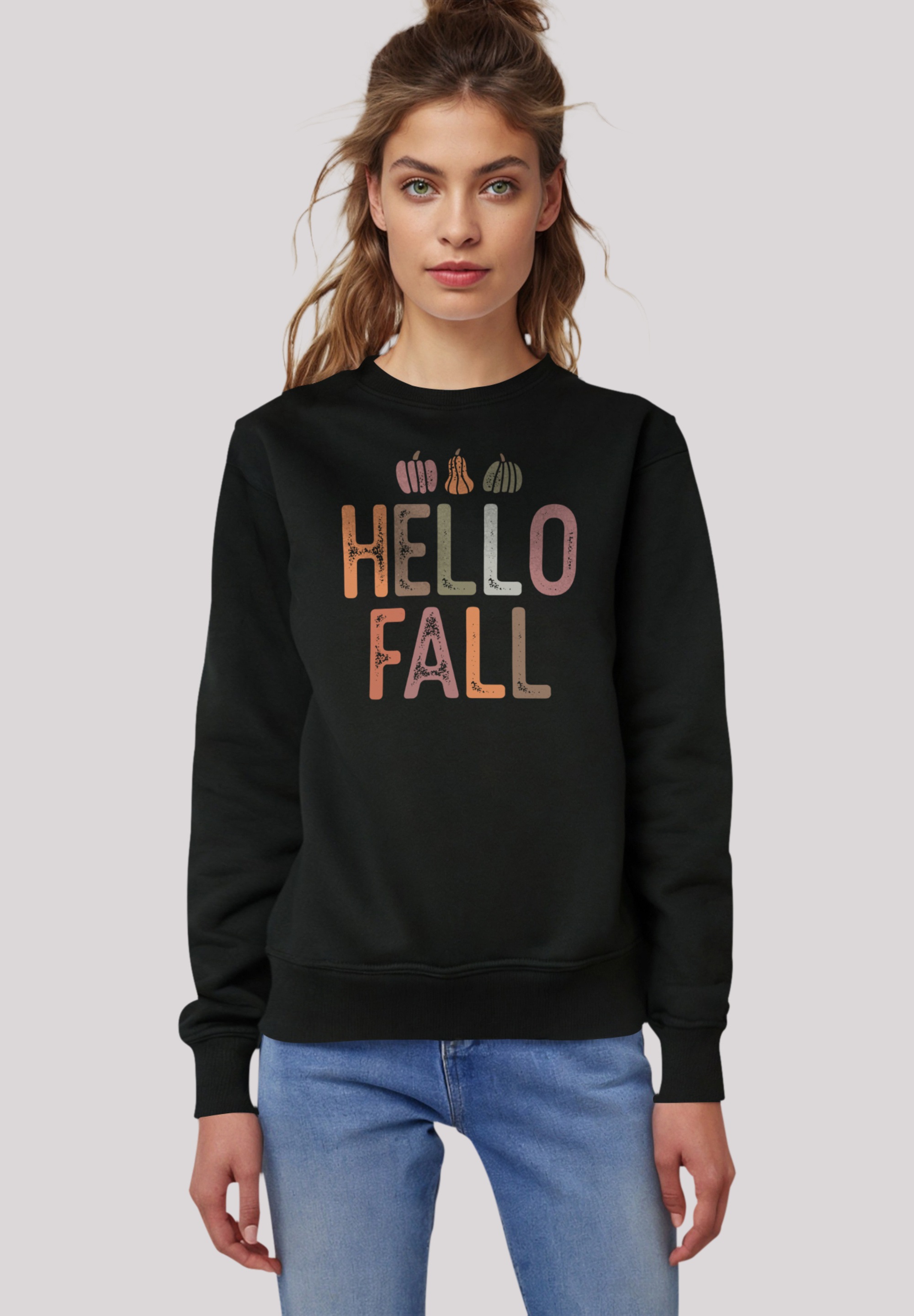 Sweatshirt F4NT4STIC "Hello Fall", Damen, Gr. L, schwarz, Obermaterial: 85% Baumwolle, 15% Polyester, casual, regular fit, Rundhals, Langarm ohne Bündchen, Sweatshirts, Premium Qualität
