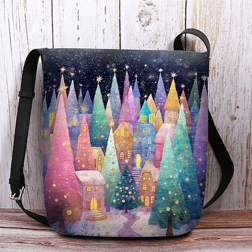 borsa a tracolla natalizia da donna - materiale in velluto di poliestere, design di Babbo Natale e gatto, borsa festiva per le feste, perfetta per le gite invernali e le feste di Natale